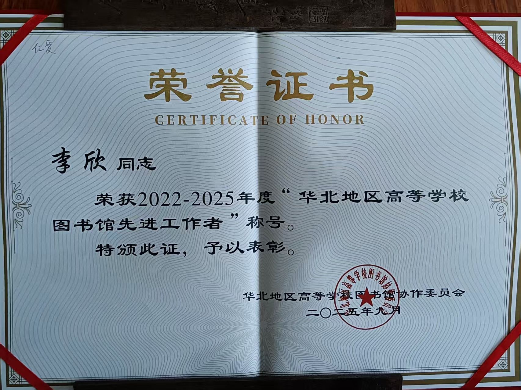 本次评选由华北地区高等学校图书馆协作委员会组织,经高校申报、各省市图工委初审及委员会终审等多轮严格遴选,共评选出先进集体65个、先进个人319名。天津地区共有17所高校图书馆、46位馆员获奖。值得一提的是,我校图书馆已连续多次获评“先进集体”,李欣老师也连续两次荣获“先进个人”称号,展现出持续领先的服务水平与团队实力。