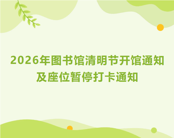 清明放假期间(2026年4月4日—4月6日),图书馆正常开放。