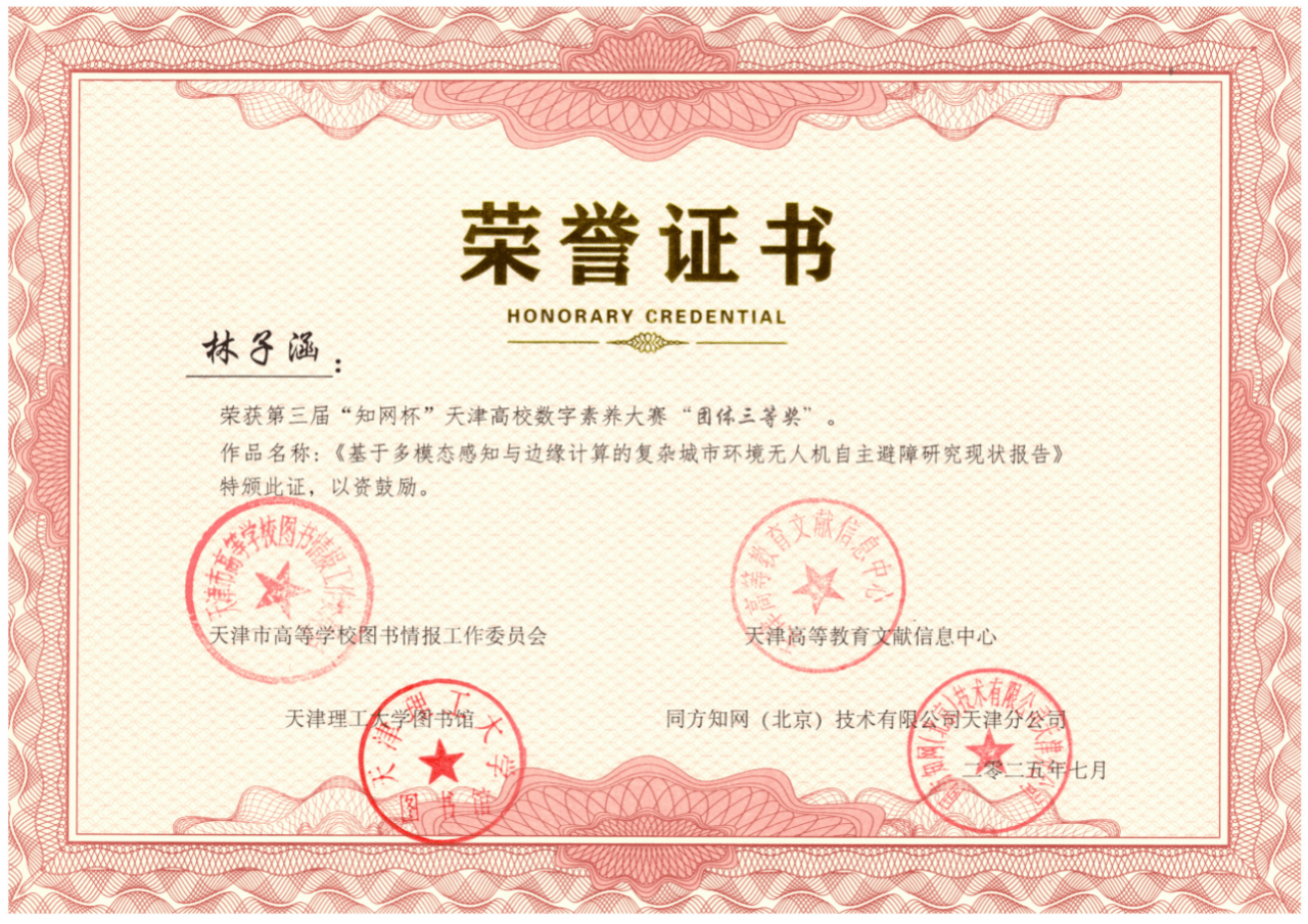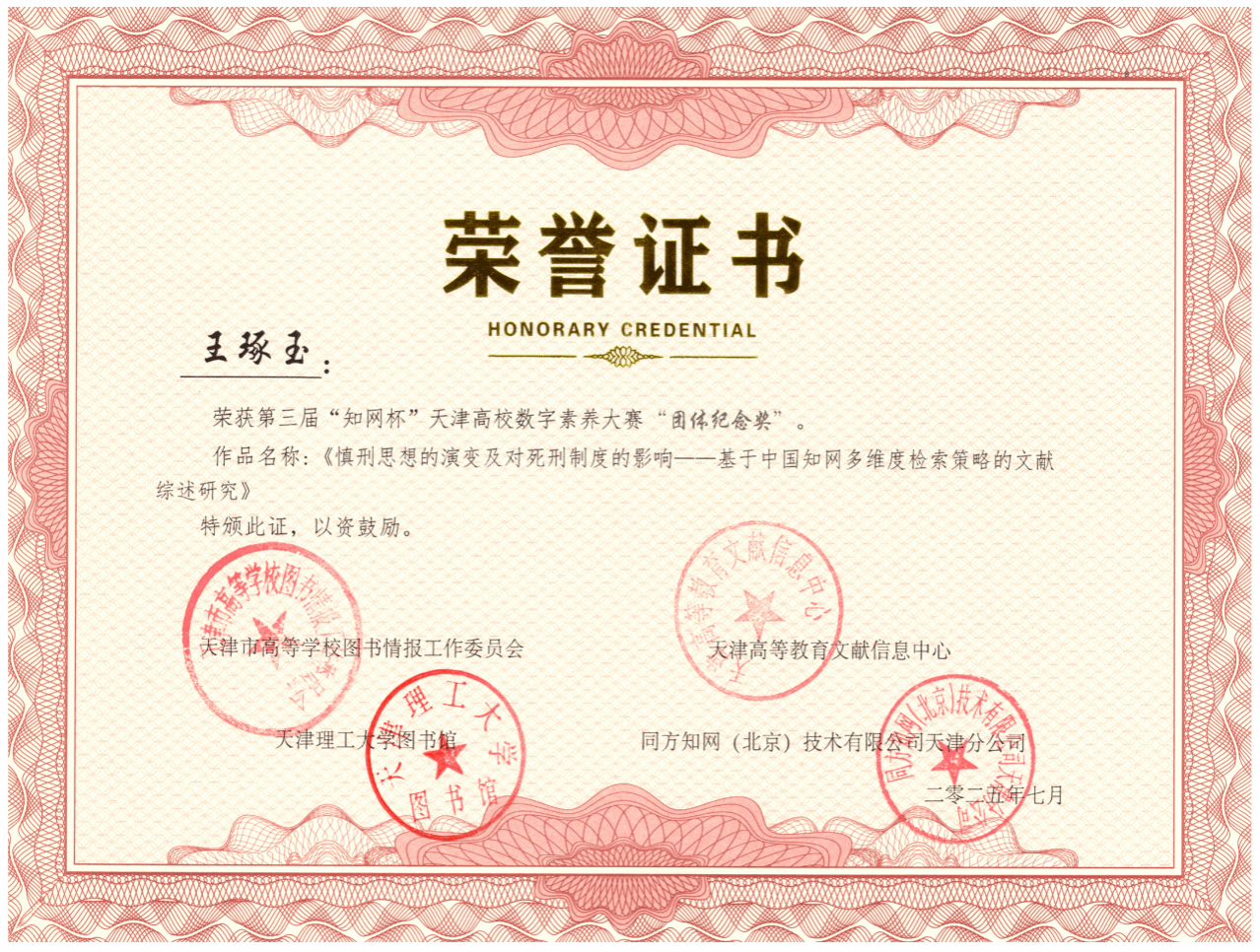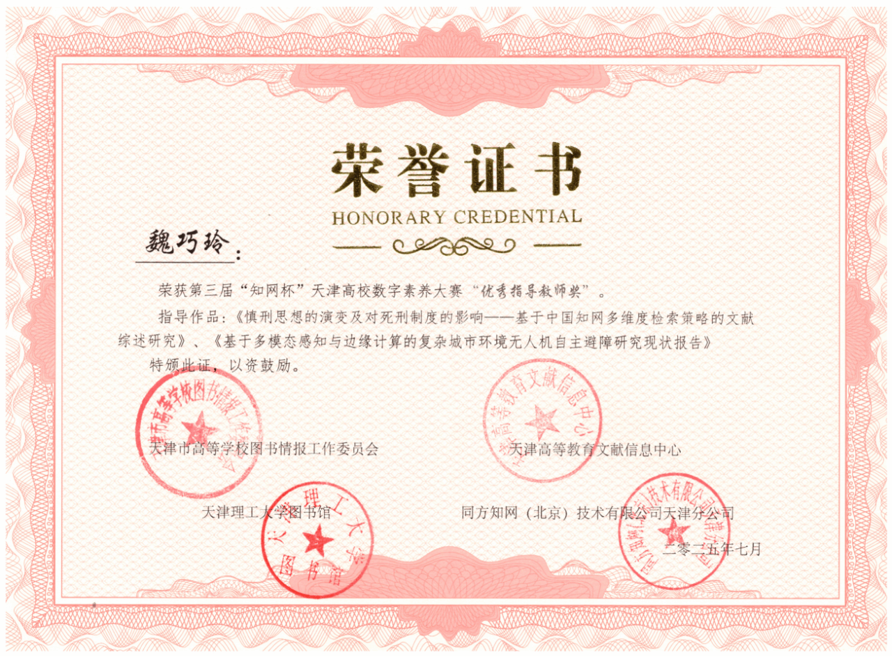 为贯彻实施国家教育数字化发展战略,落实中央网络安全和信息化委员会印发《提升全民数字素养与技能行动纲要》要求,提升大学生数字素养与技能,增强天津高校学生适应数字时代、引领技术变革的能力,展示天津高校师生数字素养教育成果,由天津市高等学校图书情报工作委员会、天津高等教育文献信息中心、天津理工大学图书馆与同方知网数科华中区天津代表处联合主办,天津市各高校图书馆协办的第三届“知网杯”天津高校数字素养大赛圆满收官。本次大赛自启动以来,我校同学积极响应并参与比赛,充分展现了我校数字素养与实践能力。