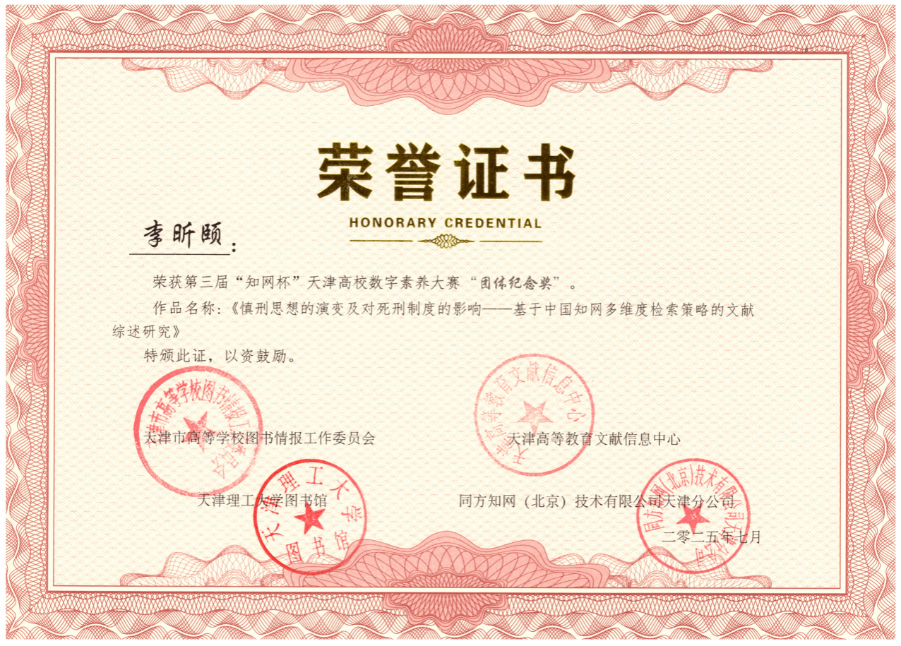 我校学子在第三届“知网杯”天津高校数字素养大赛活动中取得佳绩