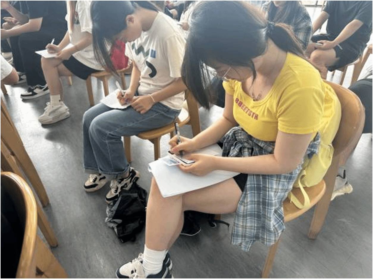 活动以校图书馆的典籍资源为文化支撑,结合学院的心理健康教育特色,由张欣琪老师主讲,王珊老师和焦老师协助。活动设计三大核心环节:诗意传承:图书馆张欣琪老师结合《月令七十二候集解》解读“小满三候”与“未满即圆满”的处世哲学,并精选《诗经》《唐诗宋词》经典诗篇,带领学生朗诵欧阳修《小满》、纳兰性德《画堂春》,剖析古诗词中“留白艺术”对现代情感的启示。以李端《听筝》为例,解析古人含蓄的情感表达;指导老师们结合“小满未满”哲学理念设计“恋爱预设”互动,学生匿名书写理想伴侣特质并讨论,打破完美主义桎梏。