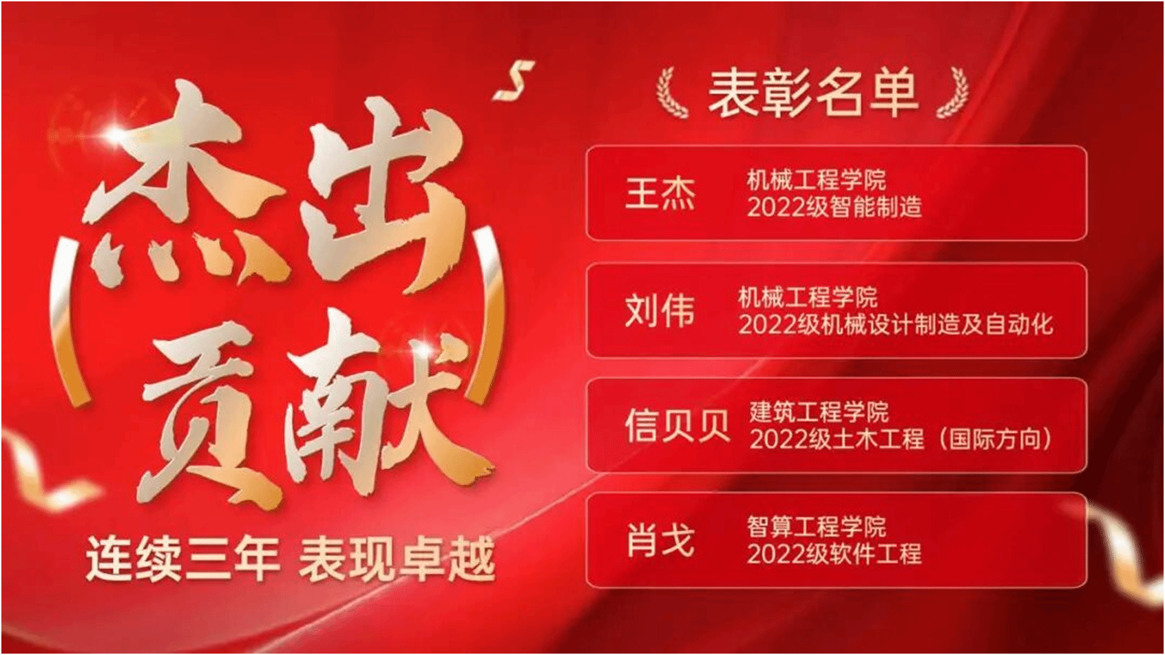 此外,刘伟、王杰、信贝贝、肖戈四位同学凭借三年如一日对图书馆志愿服务的热忱与坚守,荣获“杰出贡献奖”。