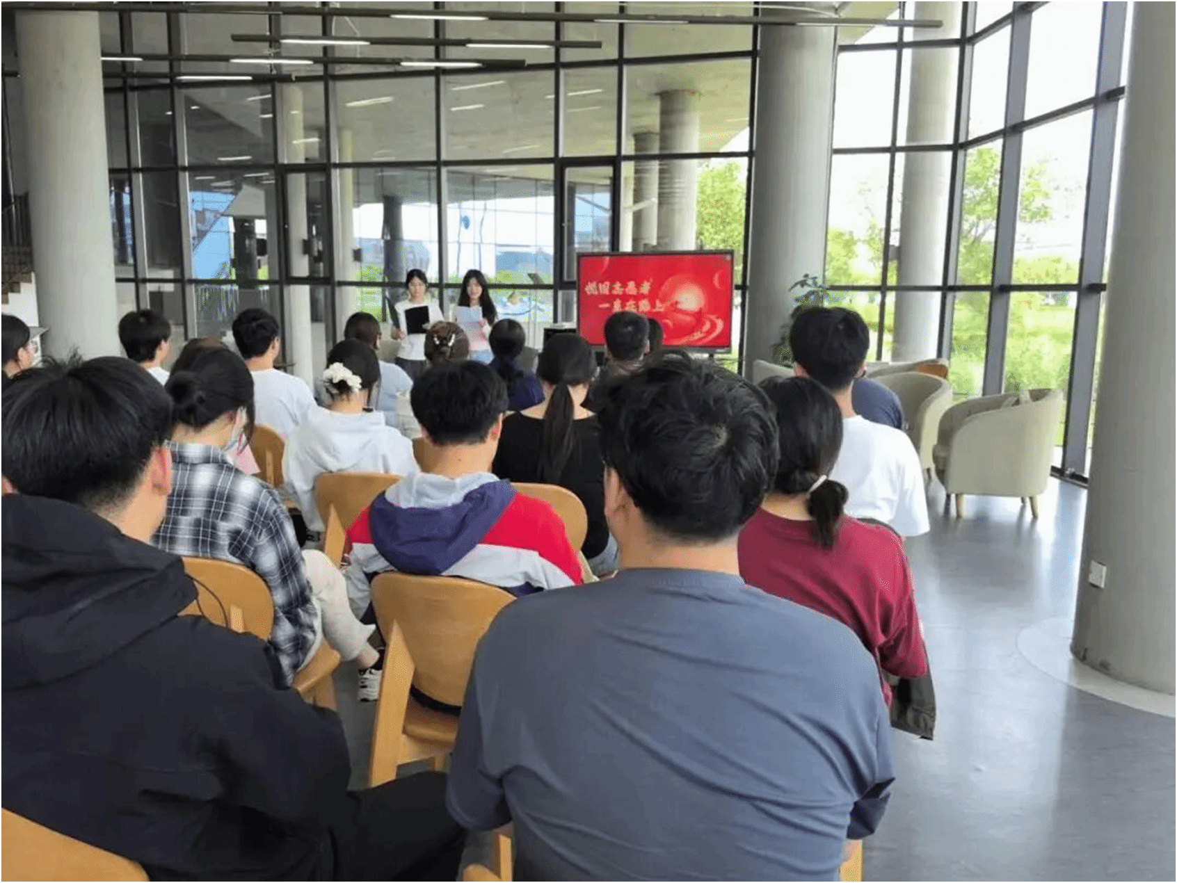 活动中,优秀志愿者代表信贝贝同学的分享,让大家深切感受到志愿工作中的点滴温暖。信贝贝同学用朴实的语言讲述了在平凡岗位上的坚守与用心,展现出志愿者精神的动人魅力。新志愿者代表唐潇潇和张诗旋同学也上台发言,表达了新成员对志愿服务的热情与决心,传递出志愿精神传承的希望。