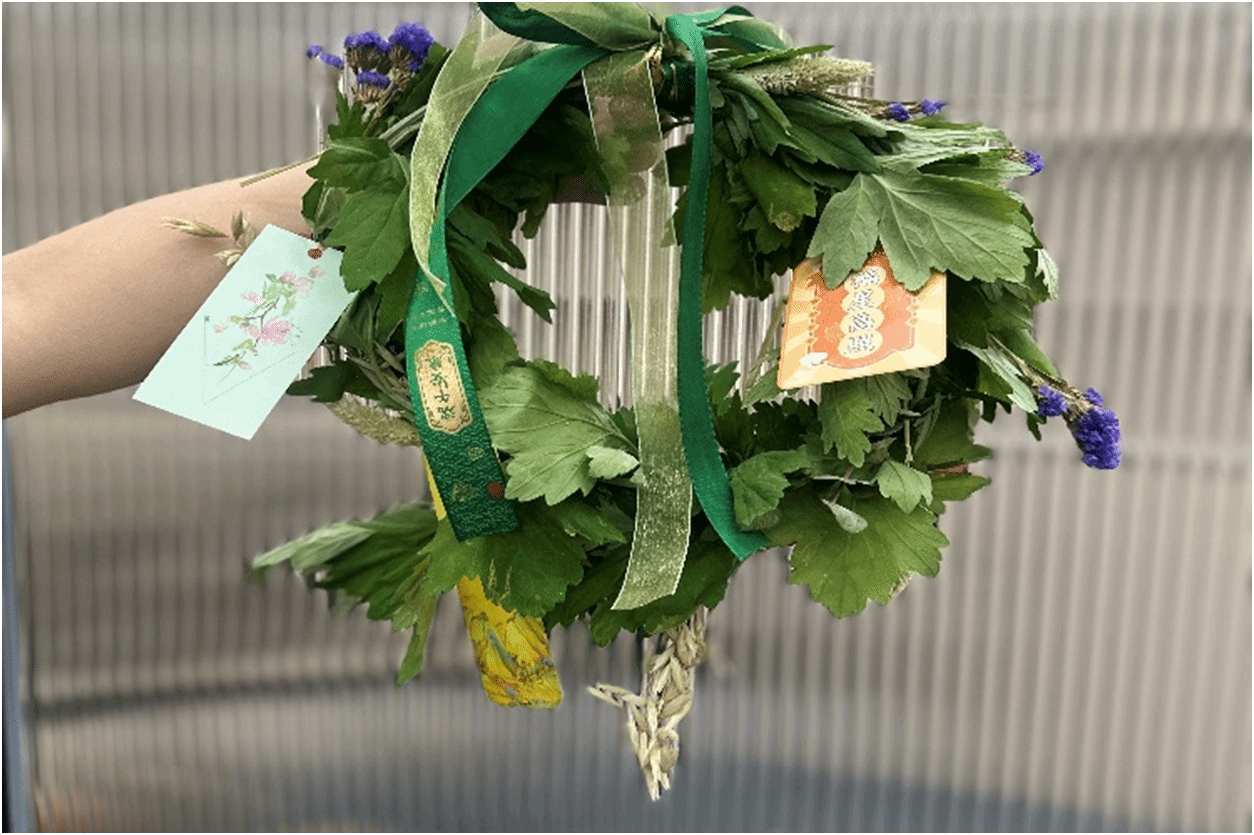 除了传统悬艾制作,活动还创新性地加入了现代元素。参与者可以用干花、香料等材料自由搭配,创作个性化的端午挂饰。