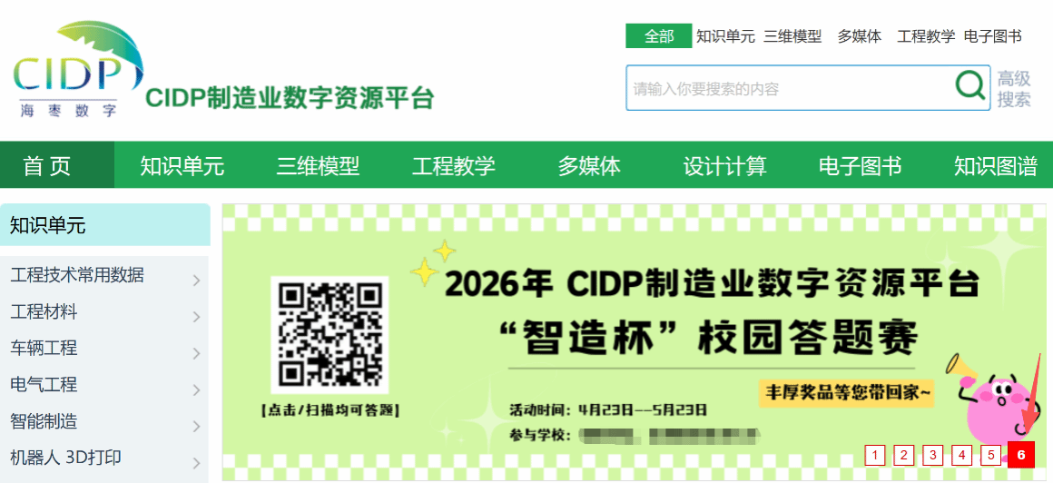 亲爱的老师、同学们注意啦!无论是课程设计、毕业设计,还是日常教学、技术学习,都能帮你高效解决问题的「CIDP 制造业数字资源平台」已就位,更有“智造杯”校园答题赛等你来挑战,快一起了解详情~