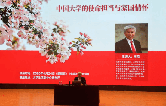 为弘扬大学精神、涵养家国情怀,引导当代青年学子明晰时代责任与历史使命,4月26日下午,由图书馆与学工部联合举办的名人讲座在大学生活动中心报告厅隆重举行。天津大学文化顾问、大学文化与校史研究荣誉所长、人文艺术学院特聘教授王杰应邀作题为“中国大学的使命担当与家国情怀”的主题报告。全校400余名师生齐聚一堂,现场聆听这场思想盛宴。讲座由图书馆馆长助理李欣老师主持。